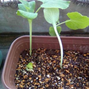 パパイヤの中に、ある子はどう見てもパパイヤじゃない......🌱 あら、去年のかぼちゃの子が覚めたかな😅