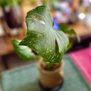 モンステラ斑入り 葉っぱの大きさ20cm前後ですが、ボルシギアナ?デリシオサ?わかるかたいらっしゃいましたら教えて下さい🙇 レジに持って行ったらお店の人が値札が間違ってるかも知れないと調べてくれる高さ💦 でも、クーポンで20%引きで、電子マネーのキャッシュバックでさらに10%お得だったんです。お小遣いだけど家族に値段は内緒です🤫