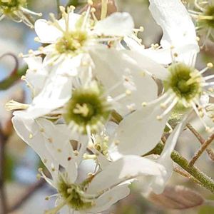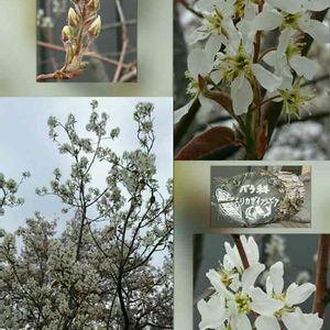 アメリカザイフリボク(亜米利加采振木) バラ目バラ科ザイフリボク属の高木性広葉樹です。 通称::ジューンベリー 葉が出る前に花が満開になるようです。 名前が分からなかったところ、カナイさんの投稿で知りました。