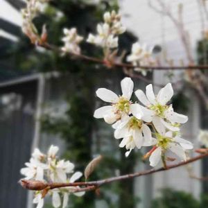 ジューンベリー 咲いてます。 随分 昔にアメリカザイフリボクとして大量生産したのですが、全く売れず… ジューンベリーとして 近年は流通してますね。