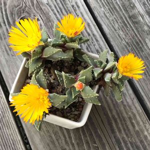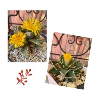 ( *ˊᗜˋ)ノꕤ*.゚おはようございます フォーカリア属の2鉢𓂃 𓈒𓏸𑁍 四海波が開きました💛 ミーパ(韓国苗)、エケとして購入‥ 夏の間、お水をあげると調子を崩す‥ 乾燥気味に育てる事に! 今月に入り花芽を見て、あ!四海波に 似ている(*◕ᴗ◕*) フォーカリア属 和名で菊波✿でした 冬型の子‥納得💛 🌼もそっくりです