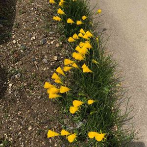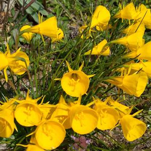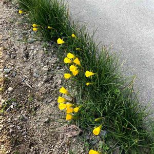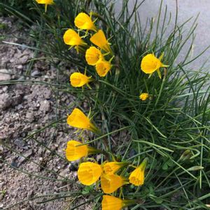 公園の植栽に原種の水仙、ナルキッスス・バルボコディウムが綺麗な黄色いお花を咲かせています💛 別名 ペチコートスイセン 可愛らしいです💛💕