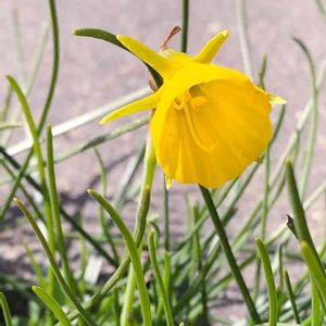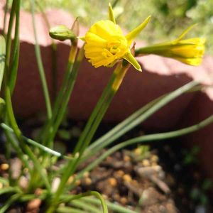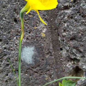 ど根性ペチコートスイセン ヒガンバナ科スイセン属 多年草 石塀と道路との隙間にひとりポツンと咲いてました。