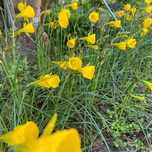 昨年は合計100輪以上咲いたペチコートスイセン。 さて今年はいくつ咲いてくれるかな? 葉っぱが茂るようになると、だんだん咲かなくなるので、ちょっと心配。