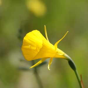 原種 水仙 ナルキッスス・バルボコディウム ペチコート スイセン ヒガンバナ科スイセン属(ナルキッスス属)の多年草 ヨーロッパ南西部原産 びっくりしました。 大通りの街路樹の 足元で ワサワサ賑わっている カラスノエンドウたちに 紛れて ポツンと1輪だけ 咲いていたんです! えっ?! 今の 原種水仙?! ?! 車道を フルスピードで 走ってるので 急ブレーキは 危険。 1度 通り過ぎて 次の交差点で 折り返して 確認しに行きました。 WOW なぜ こんな所に?! カラスノエンドウたちの 葉っぱを かき分け 手繰って 本人の葉っぱを探して確認。OK! (写せなかったですが、よく見る水仙の葉っぱよりも 細い線状なんです) ふっくら ペチコートのような 部分、じつは 副花冠なんです。 で、短剣のように 尖った チョンチョンが 花びら。 へぇー!おもしろーい! 撮影 2021 3/27 ★ スプリングイエロー