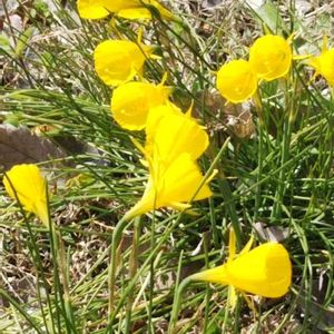 細く繊細な茎の先に濃い黄色のお花が可愛いですね💓 白の原種より遅く、早春に咲くこちらも原種のようです(^^)