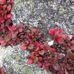 花崗岩の亀裂にしっかり根を下ろして。花が咲くのも早いが、色付くのも早い!網目の葉が独特 2022.8.30 南ア鳳凰山観音岳