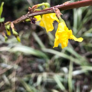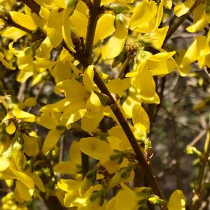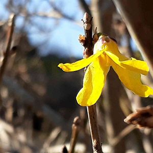 春の花ひとつ レンギョウ 暖かい陽射しを浴びて ひと足早く花開いたのね
