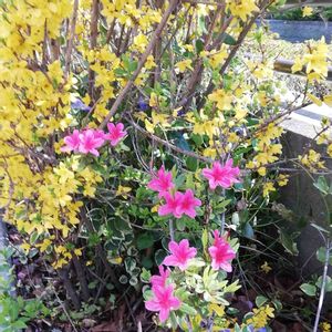 レンギョウとツツジ💖 爽やかな組み合わせ🍀