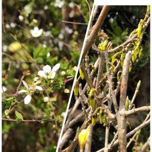 3月16日、 庭友達の庭。 春は 白い花や黄色い花で 始まりますね✨ 心が晴れやかに澄んで 元気が出ます☺️ ユキヤナギ、八重みたいのも ユキヤナギで合ってますか? 蕾が薄い緑色で可愛いですね。 ミツマタの花は 開くまで白く光る蜂の巣みたいなのに 黄色い花が飛び出すと 不思議可愛くて大好きです🍀 今年こそ挿し木で頂くつもりです🎵