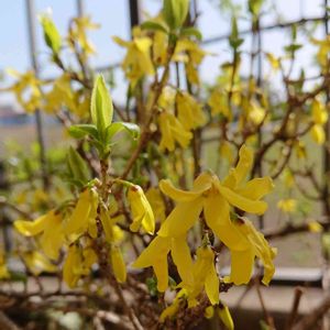 レンギョウ 花言葉・期待、希望、集中力 モクセイ科 レンギョウ属 母が通院してる病院で 春の日差しで眩しく光る 黄色い花🌼 ビタミンカラーで元気を もらえます😊
