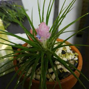 ストリクタが開花しました!! 薄いピンクに紫の花がキレイ😳 そして雨なので避難〜
