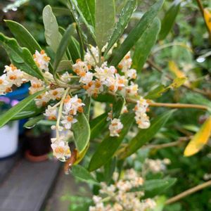 オリーブ🫒チプレシーノの花が たくさん咲きました♪ 満開です。 オリーブの花を近くで見たことが無かったので嬉しいです🤗💕 🫒フラントイオは この前の風雨で大分落ちてしまいました。🥲 今年は実が成ると良いなぁ。☺️ オリーブ🫒をメープルシロップに漬けると美味しいそうで、😋 是非是非、やってみたいんです。🥰