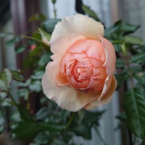 真宙の茂みの中、奥の方で一輪先に咲いてます♪ ステムがわりとしなやかで長く、花が重たいので咲くと絶対下に垂れ下がってきます💦ひどい時はステムの付け根から折れます😵 どうやって仕立てるのがいいのかいつも迷う😅