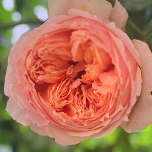 私が見ているものはこの世のものですか? 深いカップ。幾重にも重なるサーモンピンクの花弁。ちらりと覗かせる金色のボタンアイ。真宙。なんて美しいバラ。