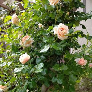 バラ 真宙🧡 お迎えしたのが真夏でなんだか苗がボロボロでしたが、見事に復活🧡 優しいアプリコットカラーに癒される🧡