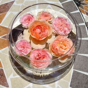 ❁花遊び❁ 皆さんのpicに憧れてフローティングフラワーをしてみました🌹 器はバードパスですが😆💦 久々にガーデンライトを付けライトアップ(*´艸`*) このような形にするとカット✂前よりもふっくらして元気が戻るとお聞きしたので明日の状態が楽しみです((o(´∀`))❀*。○