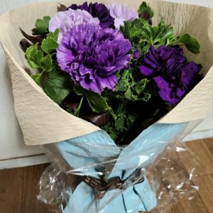 夫からの花のプレゼントが届きました! ずっと気になってたムーンダスト🎵 紫色が妖艶な雰囲気です♥️ 後でフラワーベースに活けるかアレンジメントにするか悩むなぁ~(^-^) 夫に感謝です!