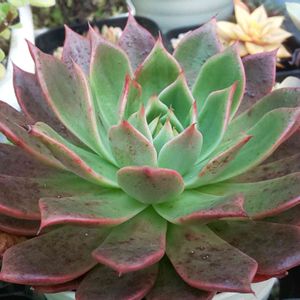 エケベリア スターボース 来た時は、すこーし赤い部分斑が あったんだけどw消えた🤔 葉の展開が早いのかもしれない 暗めの色合いだけど紅葉は 綺麗に赤くなるよぉ✨ 我が家は肥料を入れてるので いい感じにワイルドになる🤣 野性味がある方が好きかな🤔