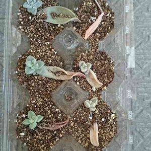 朧月さんの葉挿し♡ だいぶ大きくなりましたo(^▽^)oワーイ♪ ベッドは卵のパックです(^^;)