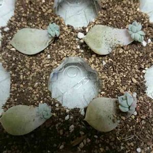多肉さんの葉挿し♪ ・・・君は誰やったっけ?(;´Д`) 薄氷さんか? グリムワンさんか? どっちかなんやけど( ̄。 ̄;)