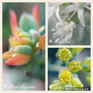 おはようございます☀ 今日も暑くなりそうですね💦 少ない種類ですが、多肉ちゃんの花を見る事が出来ました😊秋麗は満開になるのを待っていたら…途中で咲くのをやめて成長する事にしたようです。花芽が枯れて大きくなって来ました(笑)