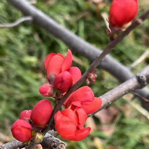 帰り道です〜 真っ赤な♥️ボケの花が咲いていました〜
