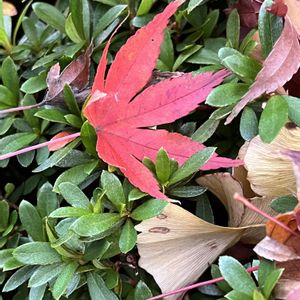 帰り道です〜 戸定邸入り口の植え込みに🍁もみじがしっとりしていました〜🍁🍁