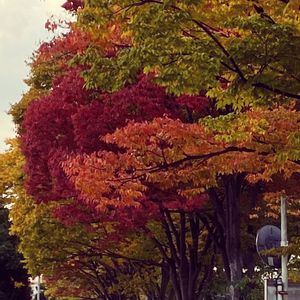 なんて綺麗なんでしょう✨✨✨ 近くに行ってみると同じ種類の木でした✨ 日のあたり加減などが微妙に違うのでしょうね… 街中でも四季を感じることが出来るなんて素敵です✨