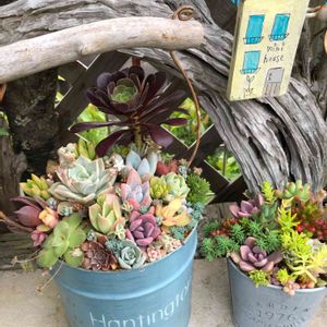 こんばんは〜🤗先日、初めてイベントでお迎えしたbeach lumberさんのリメ缶に寄せ植えモリモリです〜❣️