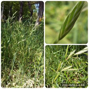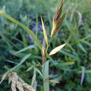 たぶん イヌムギ 犬麦 間違ってたら教えて下さい イネ科スズメノチャヒキ属の多年草 南アメリカ原産 日本には明治時代に牧草として渡来し野生化している 沖縄以外の北海道〜九州まで分布 昨日投稿した カラスムギ を調べてる時 イヌムギってお名前を見かけました。 イネ科 麦のお仲間って カラスもイヌもいるのね。面白いな~と思ってちょっと予習した矢先、仕事の道中 線路脇を走ってたら… ん!!! もしや?!?! イヌムギ?!だよねーー あははっ カラスムギを見っけた所から 僅か数百メートルの所にたくさんいました。 見逃してたんですね。 草丈は 50〜100cm程 円錐状の細い花序に まばらに小穂をつけ こんなふうに 垂れ下がってます。 小穂は ぺったんこで 長さ2.5〜3cm位。 イネ科のこんなタイプって、小花が開いてシベがちょんちょんと出てくるんだけど、イヌムギは 咲いても雄しべが外に出ず、中で自家受粉することが多いのだそう。 撮影 2022 4/26 スマホ 線路脇パラダイス ★ どうぶつシリーズ
