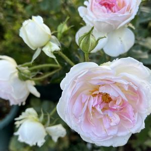 第1回花ごころ花友バラ友企画で、貰ったバラ クルールデラムールか次々咲いています✨ 美しい花色にうっとりです💕上品ですね〜 中輪で1枝に複数咲く感じです。