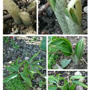 これは、もしかして😅 我が家の庭の上は、渡り鳥の通り道のようです💦。季節になると家の前の道路は、紫色に染まり沢山の種が落ちています😅 そういう訳で、毎年、木の下は、植えた覚えのないものがはえてきます。ホウチャクソウやナルコユリ、アシタバだって🤗 先日、庭をチェックした時に、今年の❔な芽生え🌱をup😊。そのなかの一つがこれでした。↖️左上から、時計回りに成長😅昆虫が脱皮をするように葉っぱをよいしょと出してみたら…。まさかとは、思いますが🙄