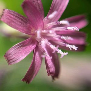 ムラサキニガナ 少し陰った林の不知のいつもの場所で出会う💜 ニガナという名前をもらっているのは、茎を切ると同じように白い汁が出ることからだそうだが、よく枝分かれした円錐花序の立ち姿は随分違う(,,>᎑<,,) 雄しべ筒の中から花粉を押し出して雌しべの先が!くるりとなる➰ 花は次々と咲いては結実して、ふわふわと冠毛を飛ばしていく(ノ)・ω・(ヾ)