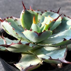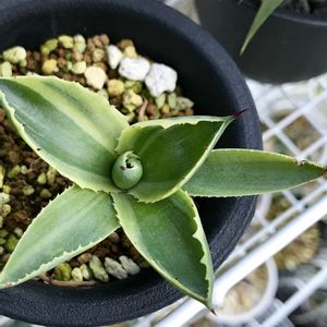 2020年もあと1.5ヶ月弱。 我が家にいる多肉植物たちのリストを計算してみたので、 属やある固まりで紹介していき、 最終的に何体生き残り、何体失敗したのか2020年の締めとして不定期で投稿していくシリーズ。 生死シリーズ2020(でタグ作成) セダム、チレコドン、クラッスラ、カランコエ、センペルビウム、ガステリア、ディッキアに続く第8弾は... アガベ。 7/7 花を咲かせるまで誰もからせねぇよ!!\\\\٩( 'ω' )و //// ( ˊᵕˋ ).。oO(頑張ります、わたしが先に死なないように) アガベは一生に一度だけ花を咲かせて、咲いた株は子孫に託して枯れてしまう。 科は違うけど、大半のアナナス科の植物もそうだが、咲くと枯れる植物を育てるのに遠慮してしまう。 アガベなんて見た目なら私の好みにジャストミートのはずなのに、この性質の為、育てている数が少ない。 アナナス科だけど、咲いても枯れないディッキアとの数の差はこのことが大きい。 写真は、プミラ、五色万代、吉祥冠錦。 プミラは3歩進んで2歩下がるような成長。その下がる時期がこれからやってくる。前回は下葉を1枚1枚枯らしながら生きていた。今年もそうなるかなと。室内温度を高めに出来たら違うかも。 それ以外だと吹上がピンクになっているから更に気温が下がるけど大丈夫か心配。 五色万代は来年子株を切り離して植え替えかな。 吉祥冠錦は寒さで辛そうにしていたけど、暖かくなってからの成長が良かった。 アガベは寒さに強いタイプもいるようだから様子を見ながら、極力ベランダ軒下で育ててみたい。 ✂︎----------我が家のアガベ---------------✂︎ ・プミラ ・五色万代 ・吉祥冠錦 ・笹の雪 ・姫笹の雪 ・吹上 ・雷神