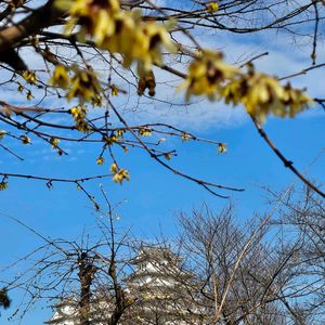 おはようございます。 蝋梅 ここも咲いてきてました。 数日前は、まだつぼみがたくさんでした💛気になって、寄ってきました💛💛💛 最後はお城が右側上に見えます🏯💛