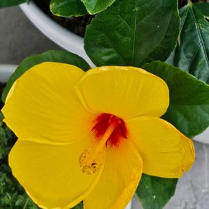 おはようございます。黄色のハイビスカス咲いてましたお店の鉢植えで✌💛