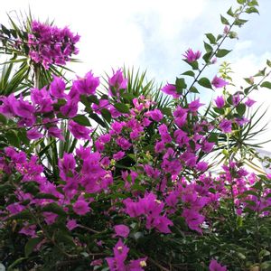 青空に伸びる ブーゲンビリア🌿 トゲには気をつけて!