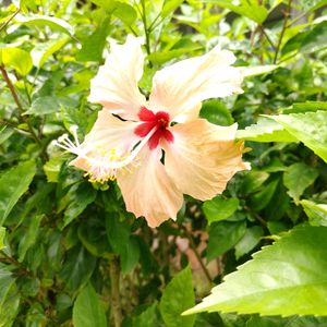 遊歩道に、蕾が次々と 咲いているハイビスカス 真っ白ではなく淡い黄色🍀