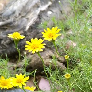 木の根元に咲く ダールベルグデージー🌿 こぼれ種から咲いたとみられる 黄色い花が、あちこちから顔を 出している🫒