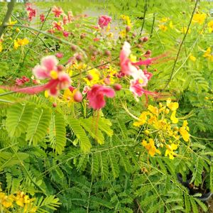 ボケてしまったけど💦 赤と黄色の🌿オオゴチョウ🌿 花の風に揺れる姿が 蝶が舞っているように 見える事から付いた名前 長い雄しべが特徴