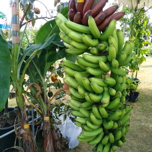 ビックリバナナ🍌🍌🍌 上は珍しい色のモラードバナナ 別名レッドバナナ 甘みが強くコクがあるらしい 何段にも実っている緑色のバナナは ドアーフ.キャベンディッシュ、と名前あり! 樹高がかなり低めとの事 ※沖縄市植木市にて…