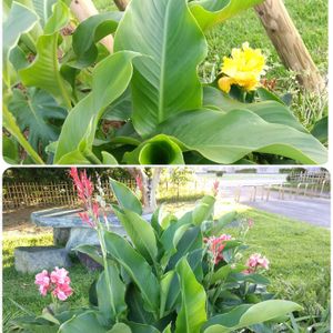 花を包み込むように 咲いている 大きな葉が綺麗🌿 暑ければ暑いほど 生育が良くなるという…カンナ