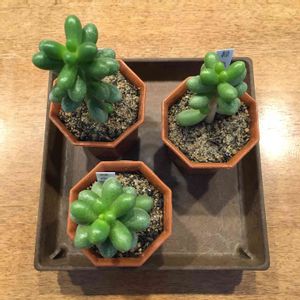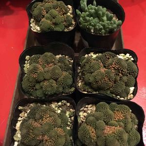 今年初の多肉狩り💕 いつもより遠いHCへ連れて行ってもらいました! マイブームのポリフィラを見つけテンション⤴︎⤴︎⤴︎ うちのとフォルム、色が違いますがまたいつ出会えるか分からないので5つお持ち帰り〜😊 なんだろ、色の悪いブロッコリー🥦みたい。グリーンになるのかなぁ⁈