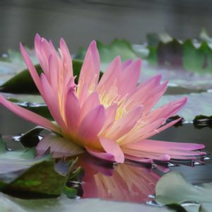 オスタラ'(N. Ostara)🪷 柔らかいピンクの八重咲き種で、葉は赤味がかっており、茶色の模様がストライプ状に入ります。残念ながら完全に開くことは少なく、不完全な形となる事が多いようです。品種名のオスタラはゲルマン民族の女神の事で、「春の象徴(豊かな恵み)」とされているものです YouTuber&睡蓮農園のkazuさんの所で初めて見ました🤭♪ ピンクの花びらが可愛い品種🪷です。🤭 初見と言っても草津みずの森にあったような⁉️気がする😅💦