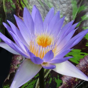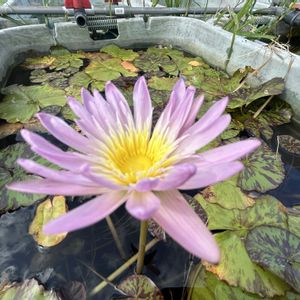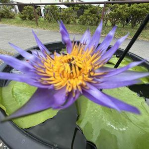 ダオ・ファー(N. Dao Fah )🪷 タイのワスワット博士によって作られた品種で、花弁先はブルーで花弁元は淡い蛍光イエローとなります。太陽光下ではほんのりと発色しているようにも見え、大変美しい品種です。葉はグリーンで模様等はありません。夏場の気温の高い時期はブルー、イエローとも色合いがかなり淡くなり、こちらもまた大変美しいものです。 このコ🪷は花芯が灯台の灯りのように光って見えるんですよ!🤭 このコは樽栽培で小さい株ですが、 掛川花鳥園さんが睡蓮農園のkazuさんから買ったので、9月末まで樽栽培して、広い池へ移動すると思われます!🤭♪来年には植物園sizeへと変貌するでしょうね!