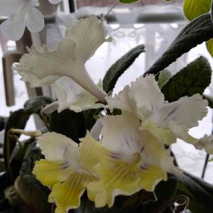 ストレプトカーパス レース模様の様な縁取り 蕾の時はどんな花?と思ったけど こんなに可愛かったわ💕