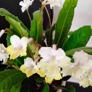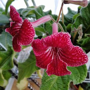 今咲いてるストレプトカーパス ほぼ【赤穂ジェスネリアード】の花です これにサクソルム青と白