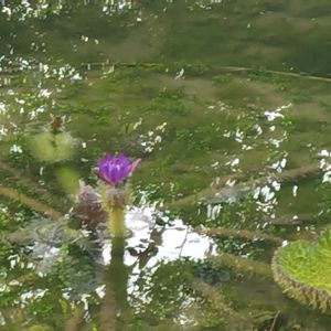 道端探し隊 本日オオオニバス2回目の投稿 午後の二番花です 雨と雷だったのでやめようかと思っていたのですが 開花時刻(以前の体験時刻 4時)頃には上がっていたので 出かけて行きました 咲いていなければ少し待つつもりだったのに グッド タイミングでした 妖艶な花色には驚かされますね 同じ花だとはおもえませんね