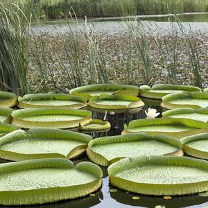 「ロングウッド・オオオニバス」 ※オオオニバス(ブラジル原産)とパラグアイオニバスの交配種 ※葉の縁は10cm前後立ち上がる 咲くやこの花館7/18